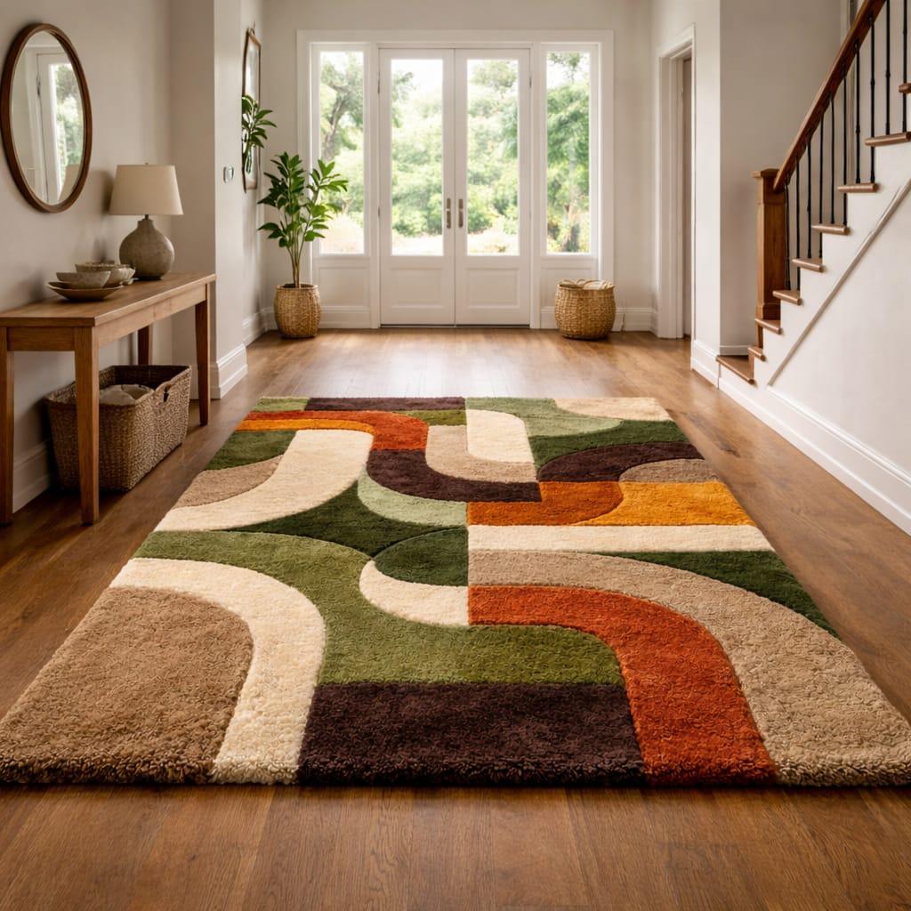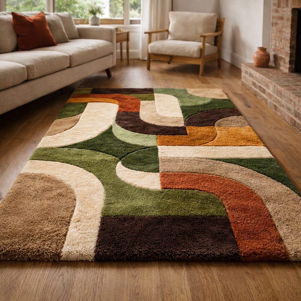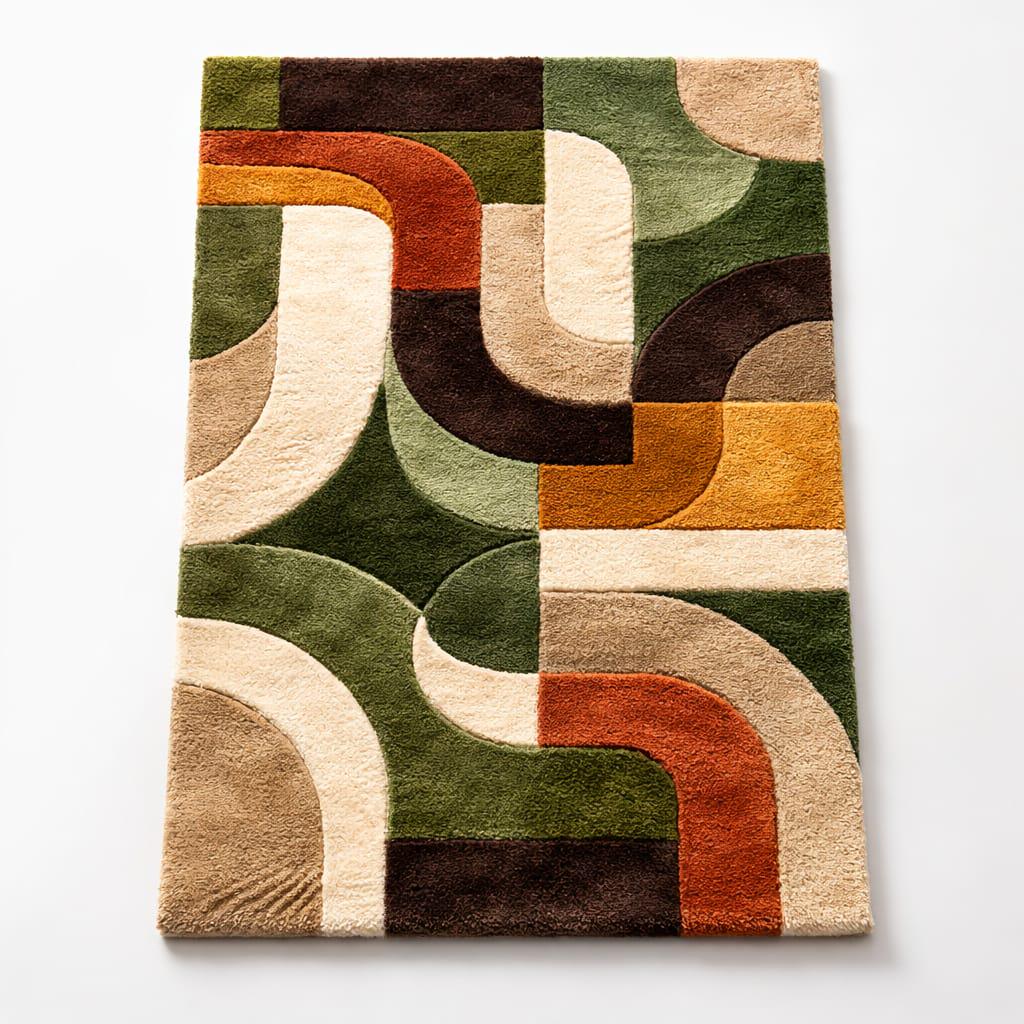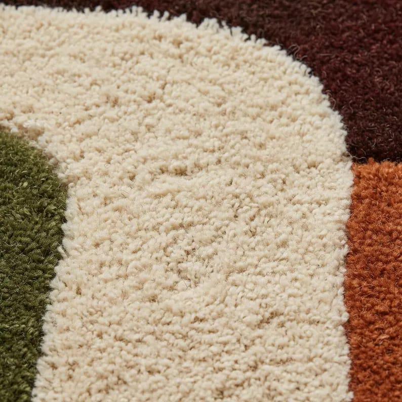 Mid-Century Modern Geometric Rug, 70s Earth Tone Abstract Tufted Wool Area Rug