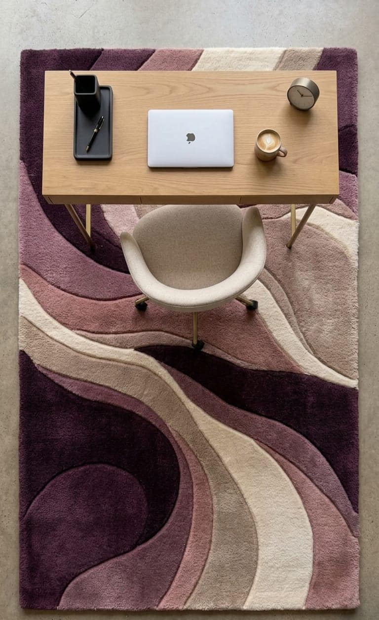 Aurora Sculpted Wool Rug – Hand-Tufted Abstract Wave Plum Mauve Carpet