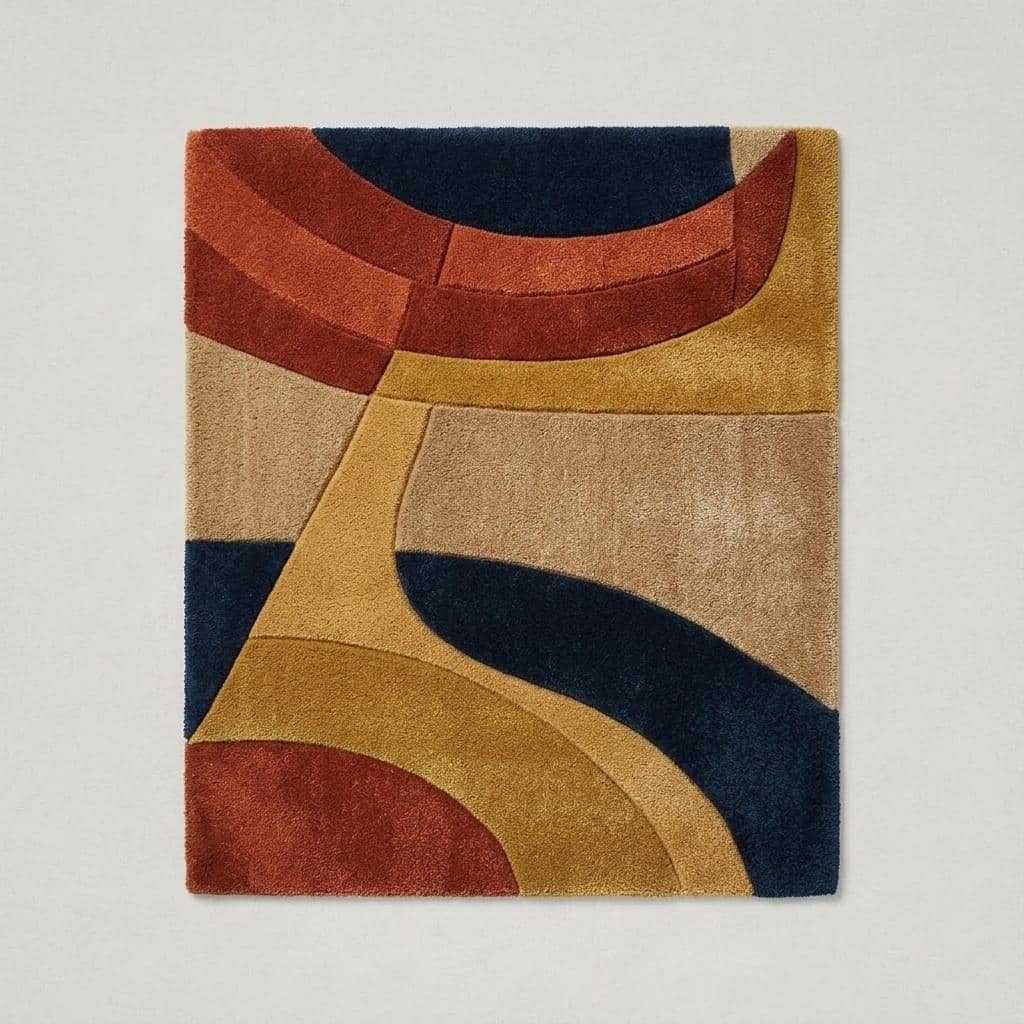 Bring warmth, art, and personality into your home with this abstract sculptural rug inspired by modern architecture and fluid forms.