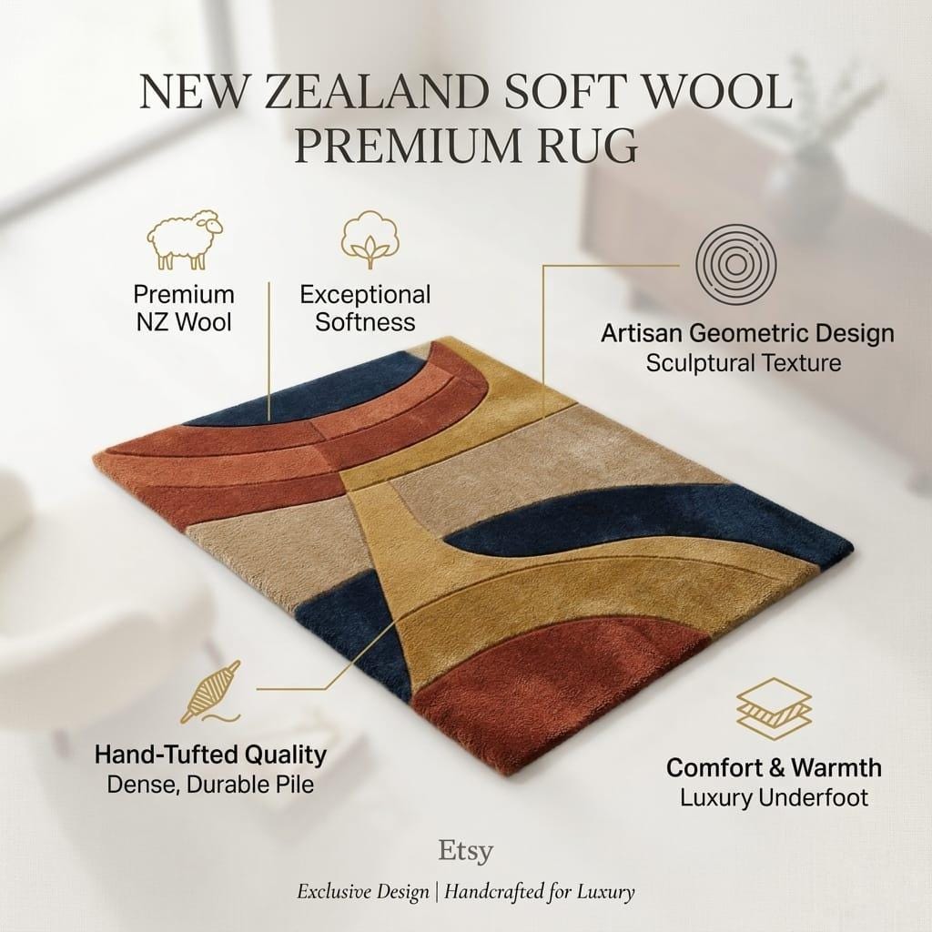 Crafted using 100% premium New Zealand wool, known for: ✔ Ultra-soft feel underfoot
